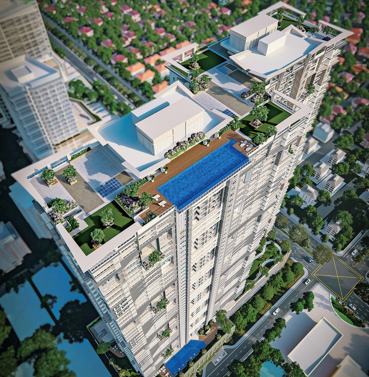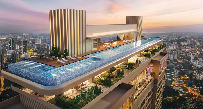 この物件の持つ最大の特徴は居住者に向けて、広大なスポーツ施設を用意していること。64階部分には1フロア丸ごと利用したクアラルンプール最大のトレーニングルームとして、スカイスポーツ施設が用意されている。さらに屋上にあるスカイプールについては、クアランプールの最高層、最長(全長118m)となる巨大なものが用意されている。発展著しいクアラルンプールの街並みの絶景を望みながら、癒しの時間を過ごすことができるだろう。
