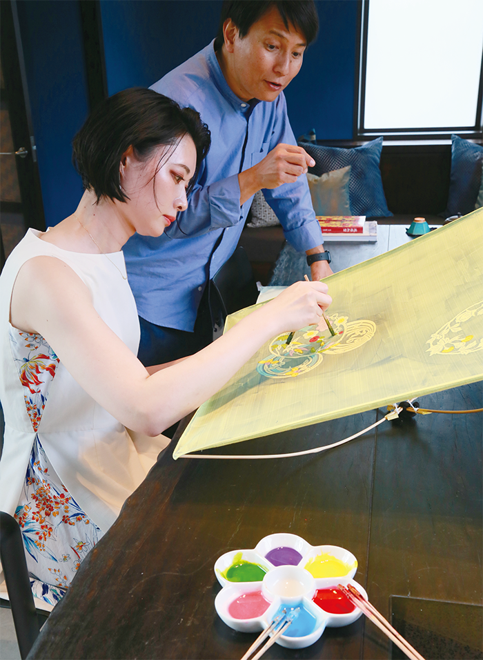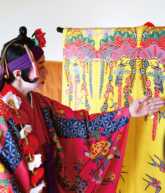 そして、今回、満を持して読者にご紹介したいプログラムが「琉球紅型滞在」だ。琉球紅型が湛える色彩美を味わい、端正な絵柄に込められたもてなしの心を一つひとつ紐解き、伝統美の奥深さを体感する特別な滞在。客室で最高峰の職人たちから直に手ほどきを受ける紅型の絵付け体験や、御家元や師範代が舞う琉球舞踊の舞台をプライベートに目の当たりにできる貴重かつ稀有なプランだ。舞踊鑑賞の後は演者たちと交流の時を持つことで、紅型の地色や絵柄に込められた奥深い意義や古(いにしえ)に生きた琉球の人々の内に秘められた情熱的な感性に触れることができるのも、この宿ならではのもてなしのかたちだ。