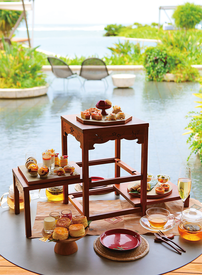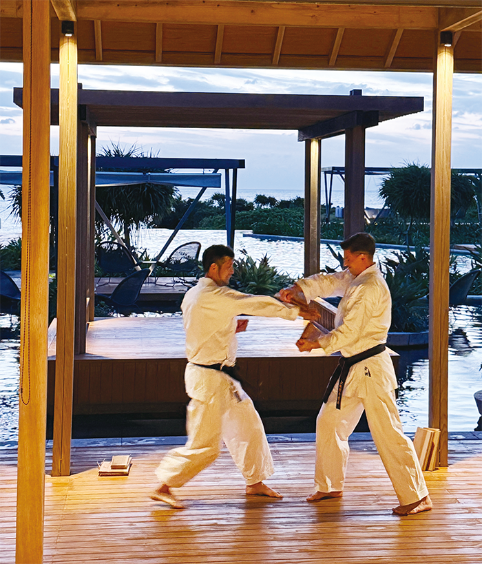 「ティーダ」という空間を語るにおいて、ラグジュアリーなのは空間やロケーションだけではない。客室に滞在しながら琉球空手や三線を学んだり、宵の時刻にはライトアップされたプールサイドでプライベートに琉球古典音楽の生演奏を楽しむなど、リクエストするだけで至極の体験の数々をセッティングしてくれる至れり尽くせりのサービスの充実ぶりも頼もしい。