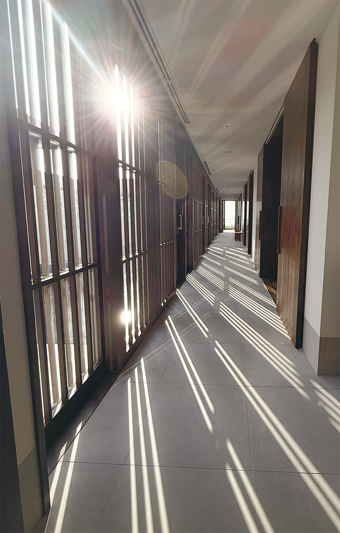 (6)「ティーダ」の渡り廊下。南国の強い光が建築美を際立たせる。