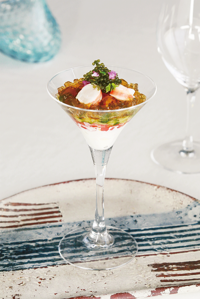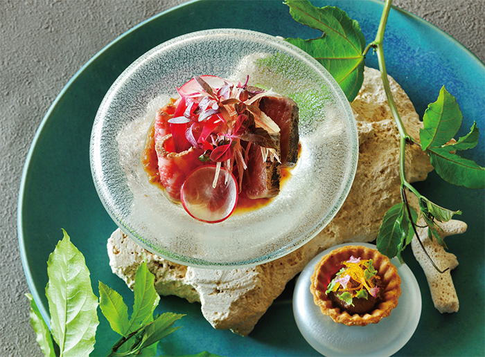 もう一つ、このリゾートを語る上で忘れてはならないのが“食とウェルネスの幸せなマリアージュ”だ。メインダイニングでは「琉球ガストロノミア~Bellezza~」をコンセプトに、琉球王朝時代の交易がもたらした医食同源の教えとイタリア語で美を意味する“Bellezza”が融合した9品の贅を極めた逸品たちが、高揚感と幸せに包まれる喜びをもたらしてくれる。9種類の皿を彩る南欧や沖縄の銘柄からなる極上のワインペアリングもまた天にも昇る心地よさへと誘ってくれるに違いない。