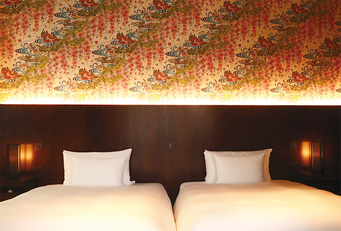 (3)ベッドルームには紅型作家による華やかな画が施されている。