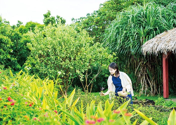 古来、島民たちが大切に育んできた知恵や営みのかたちを訪れる人々に滞在を通して伝え紡いでいる『星のや竹富島』。冬から春にかけて旬を迎える施設内のハーブ園に実る地の恵みに思いを込めて至福の滞在プランを提案している。