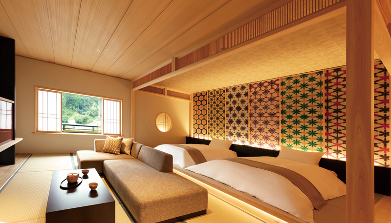 次なる施設は『界 長門』だ。山口県長門湯本温泉に開業する新たなる『界』ブランドの施設誕生。長門の温泉街再生・街づくりを目的とした地域ぐるみの一大プロジェクトの要ともいえるものだ。敷地内には宿泊者以外も利用できるカフェも併設され、温泉街との共存が図られている。宿と一体化した“ 温泉街に遊ぶ”という粋な楽しみ方も満喫できそうだ。