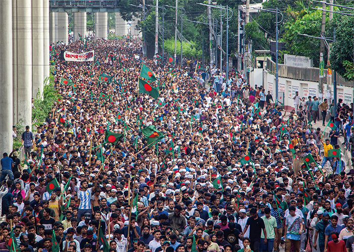 ところが、誰も予想していなかった革命が2024年8月に起こったのである。最初はダッカ大学の学生による政府の公務員採用差別に対する小さな抗議デモから始まった。その反政府デモは全国の大学に拡がりを見せたが、ハシナ政権がデモを抑えるために、警察が無抵抗の学生に銃を向け600人以上の学生が殺された。その様子がSNSで全国へ拡散され、一般市民もデモに加わり国を挙げての大きなうねりとなった。2024年8月首相官邸をデモ隊に囲まれたハシナ首相は、軍隊に出動を命じたが軍隊はこの命令を拒否、ハシナ首相はインドへ逃亡した。ハシナ政権崩壊後、国民は信頼の厚いユヌス氏に首相就任を依頼した。ユヌス氏は、民主的な総選挙が行われるまでの期間に限り暫定政権のトップにあたる首席顧問として、国の再建を担う立場に就いた。