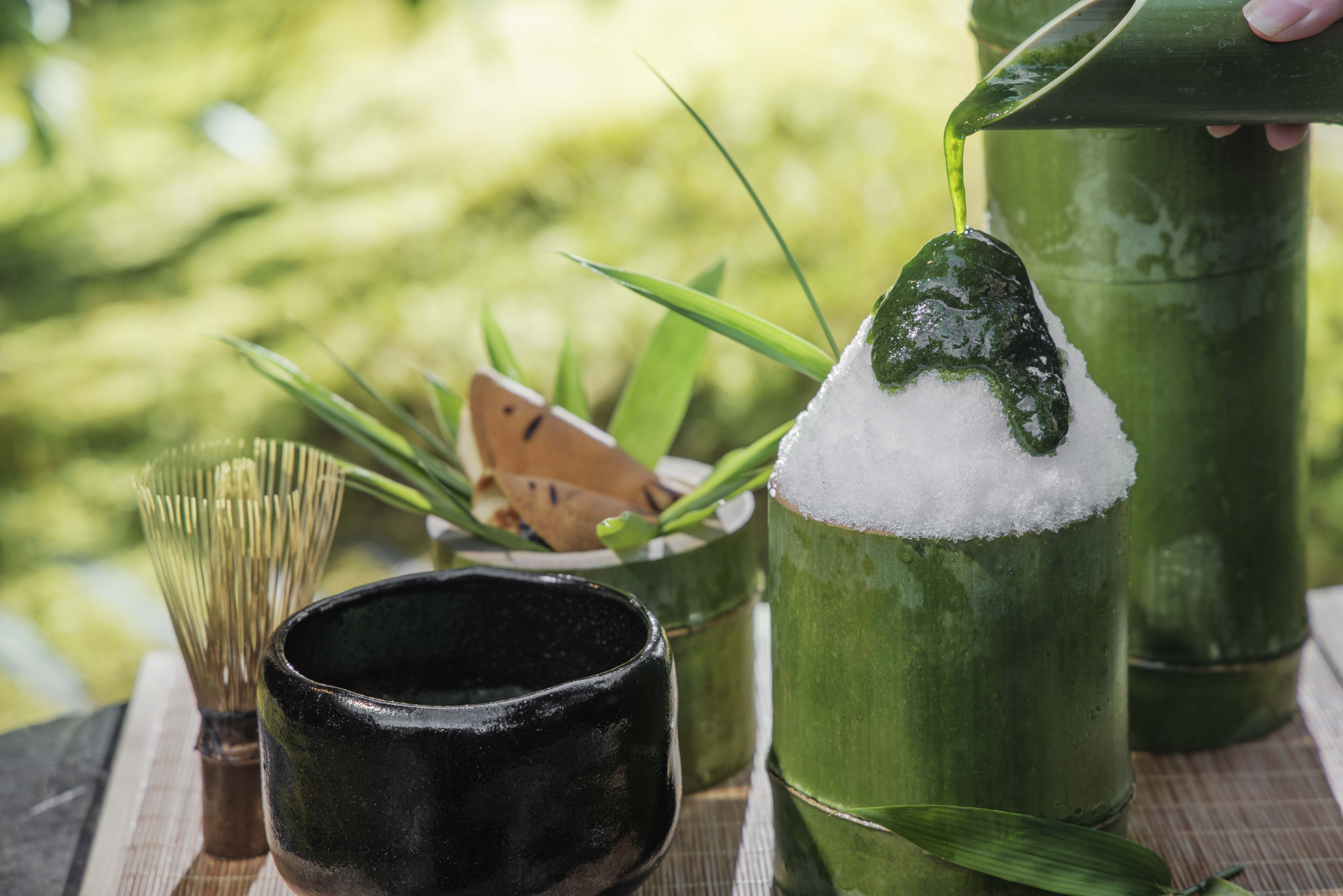 『星のや京都』は、7月1日から8月31日の期間、市街地より最大4.9度涼しいとされる“平安貴族の避暑地”で、自然が生み出す涼と食を堪能する滞在プログラム「奥嵐山の納涼滞在」を開催致します。宿は山の北側に面しており、立地と豊富な木々、そして山から流れ込む冷気とミスト状の沢の水などの影響で敷地に足を踏み入れると天然のクーラーのような冷たい風を感じられます。アーリーチェックイン後、涼やかな特等席で味わう蓼シロップの特製かき氷とともに供されるのは、平安時代に夏バテ予防の薬として重宝された大蒜(にんにく)の餡を忍ばせた若鮎。先人の知恵が詰まった甘味とともに、奥嵐山の涼を堪能できる贅沢なひとときです。遥か昔から息づく大自然が生み出す涼に抱かれて、旬の食材の数々とともに贅沢な夏のひとときをお過ごしください。